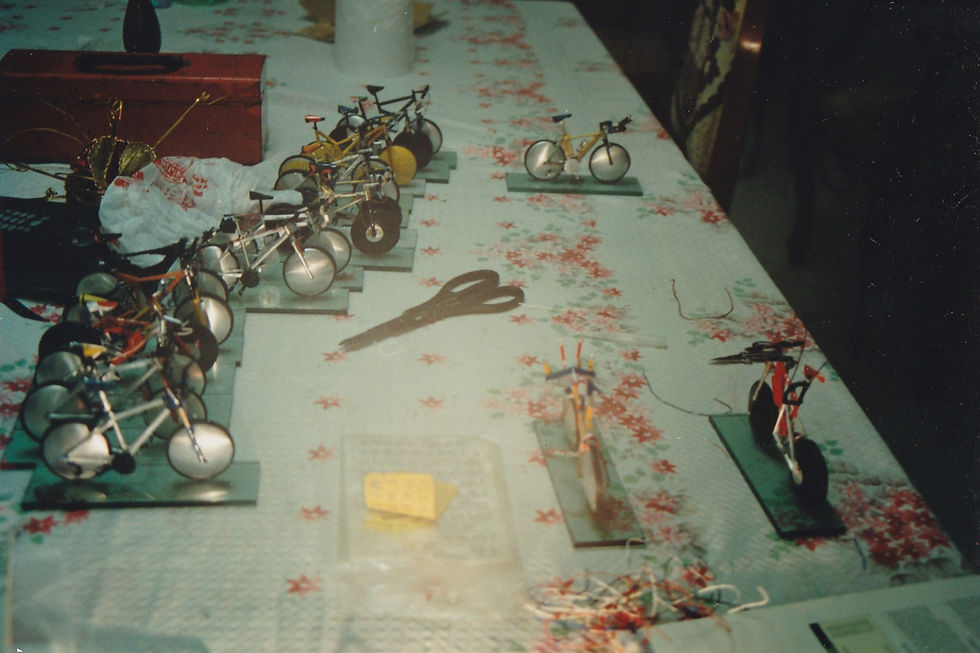 Incluso antes de la competición, la necesidad de rendimiento me llevó a innovar. Mientras entrenaba en las brechas, diseñé mi propio sistema de frenos y mi propio sistema de anclaje de zapatillas a los pedales por medio de pernos de presión, porque descubrí que los sistemas disponibles en la tienda del pueblo necesitaban ser mejorados para maximizar el rendimiento. Esa bicicleta, cargada de historia e innovación, me acompañó hasta la universidad en Mérida en 1999. Para costear mis estudios de Diseño, fabricaba y vendía bicicletas a escala hechas con latas de aluminio de refrescos, perfeccionando mi ojo para las proporciones y la simetría.